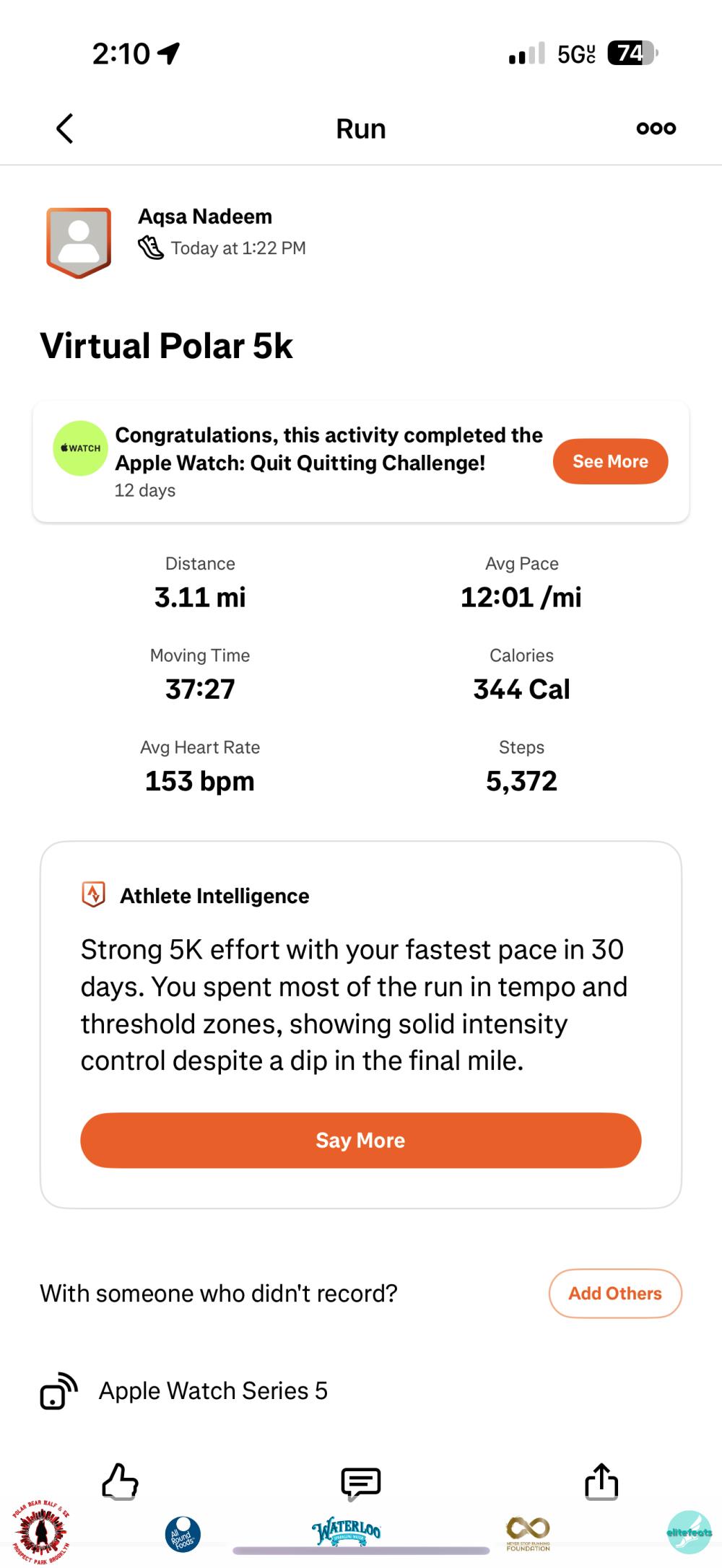 Bib# 141   Aqsa Nadeem - 00:37:25 - Virtual 5K